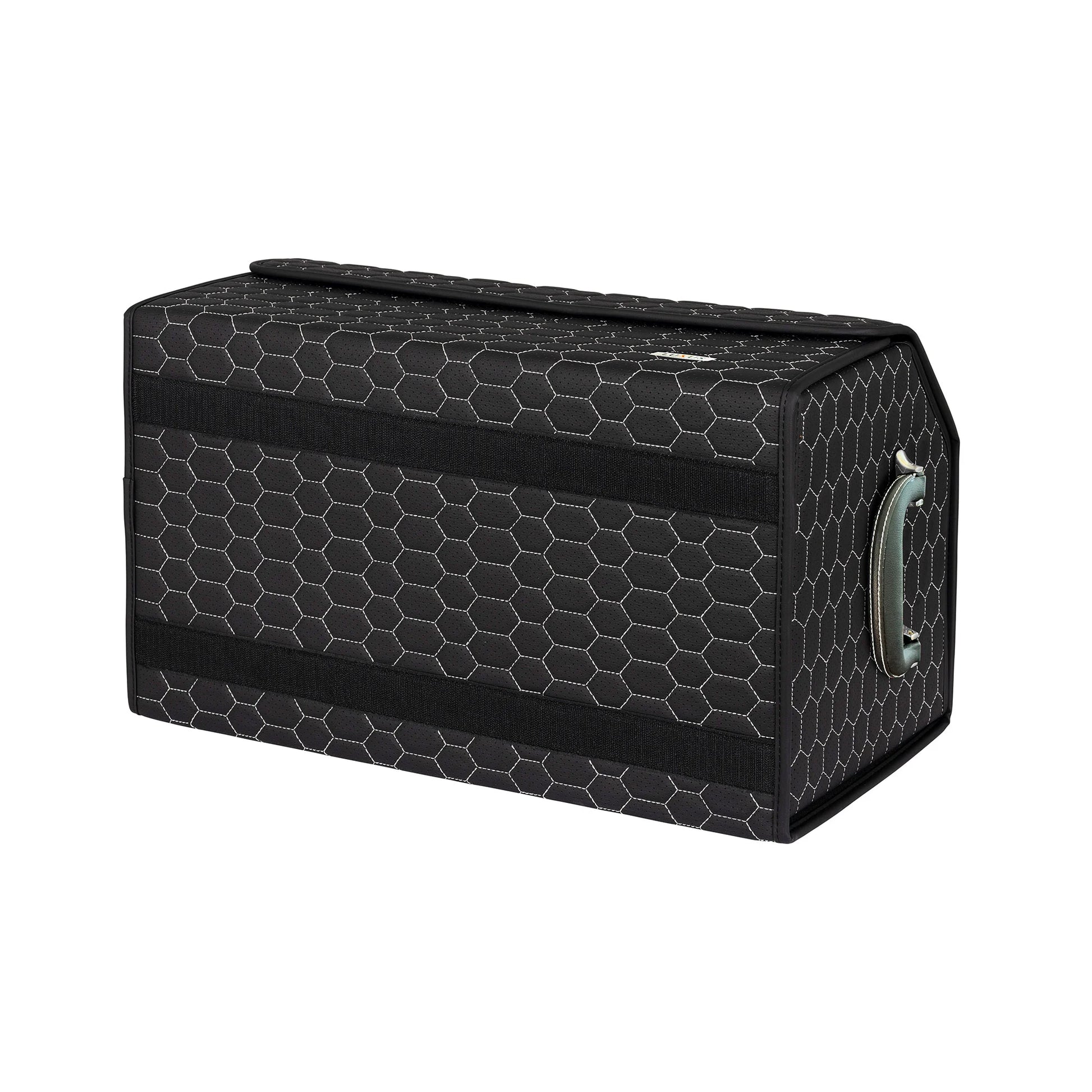 Boite de Rangement Voiture | Motif Nid d'Abeille | Noir & Surpiqûres Blanches
