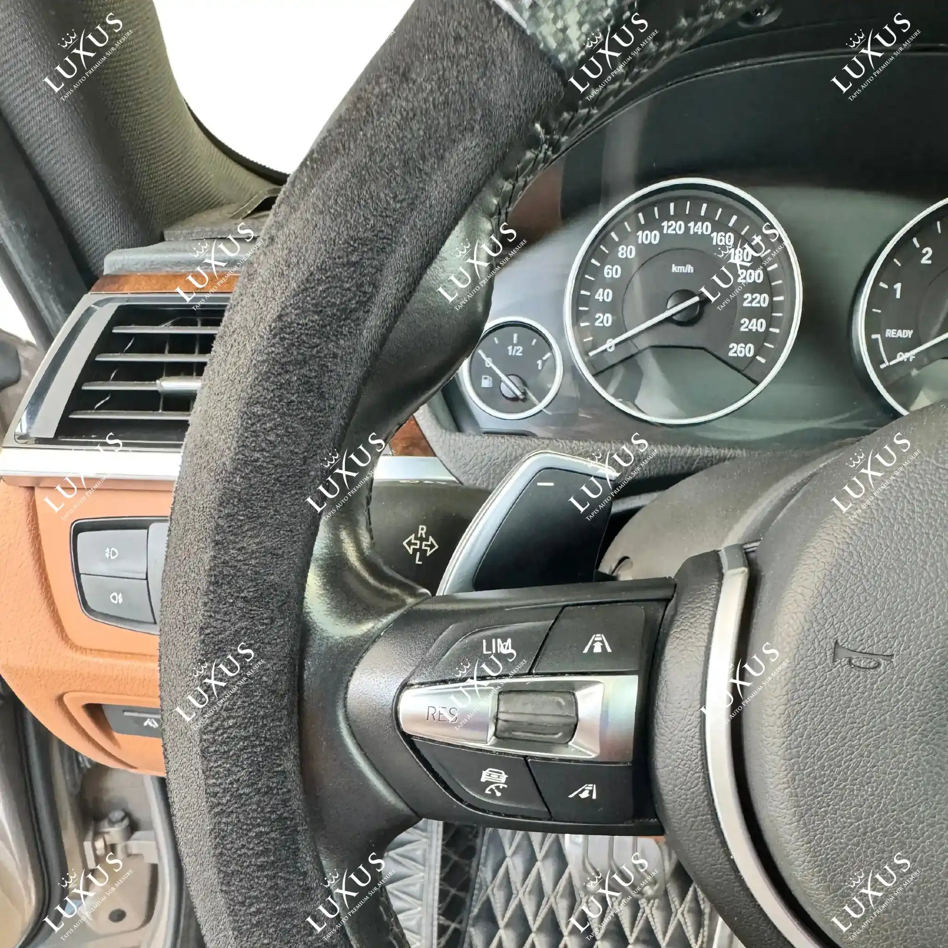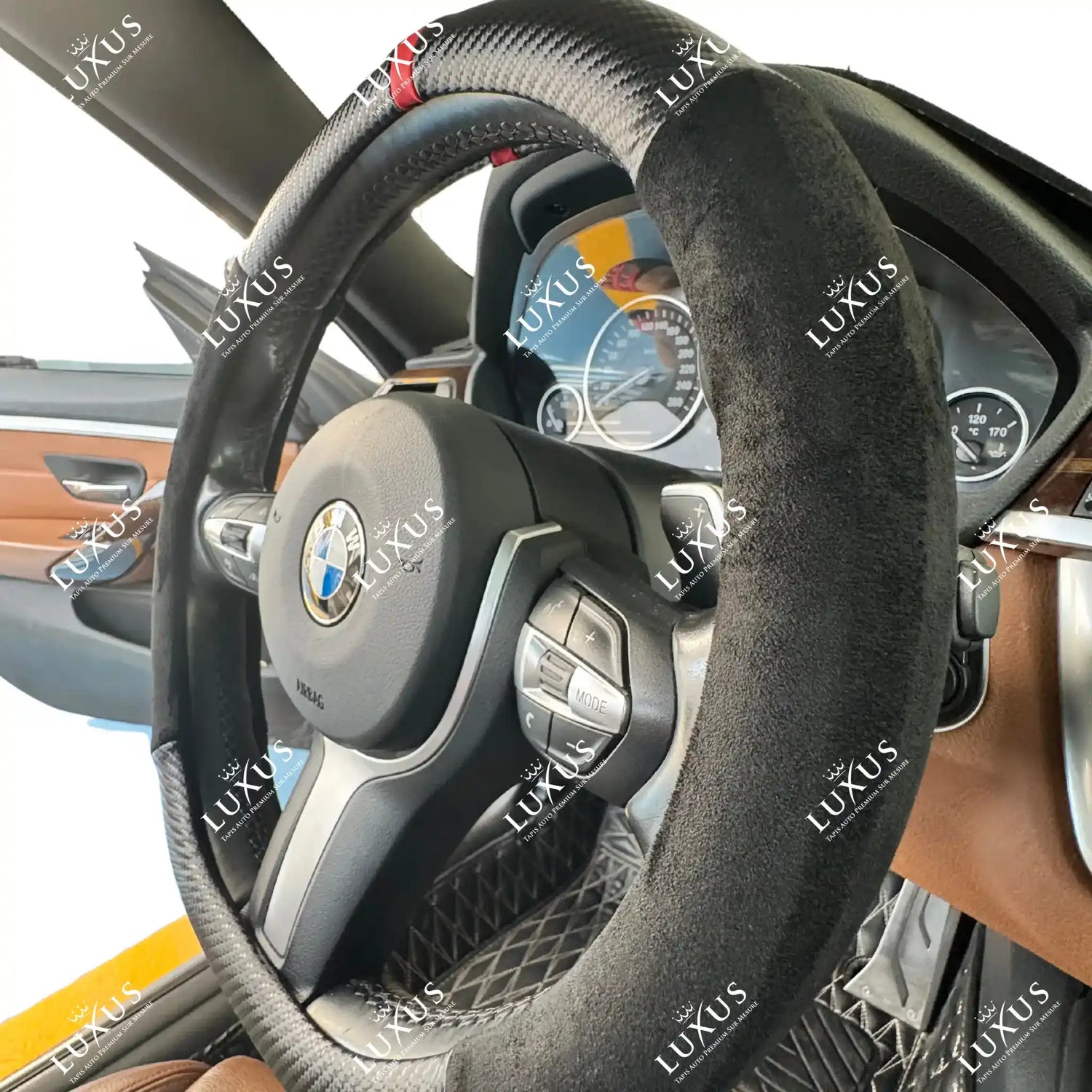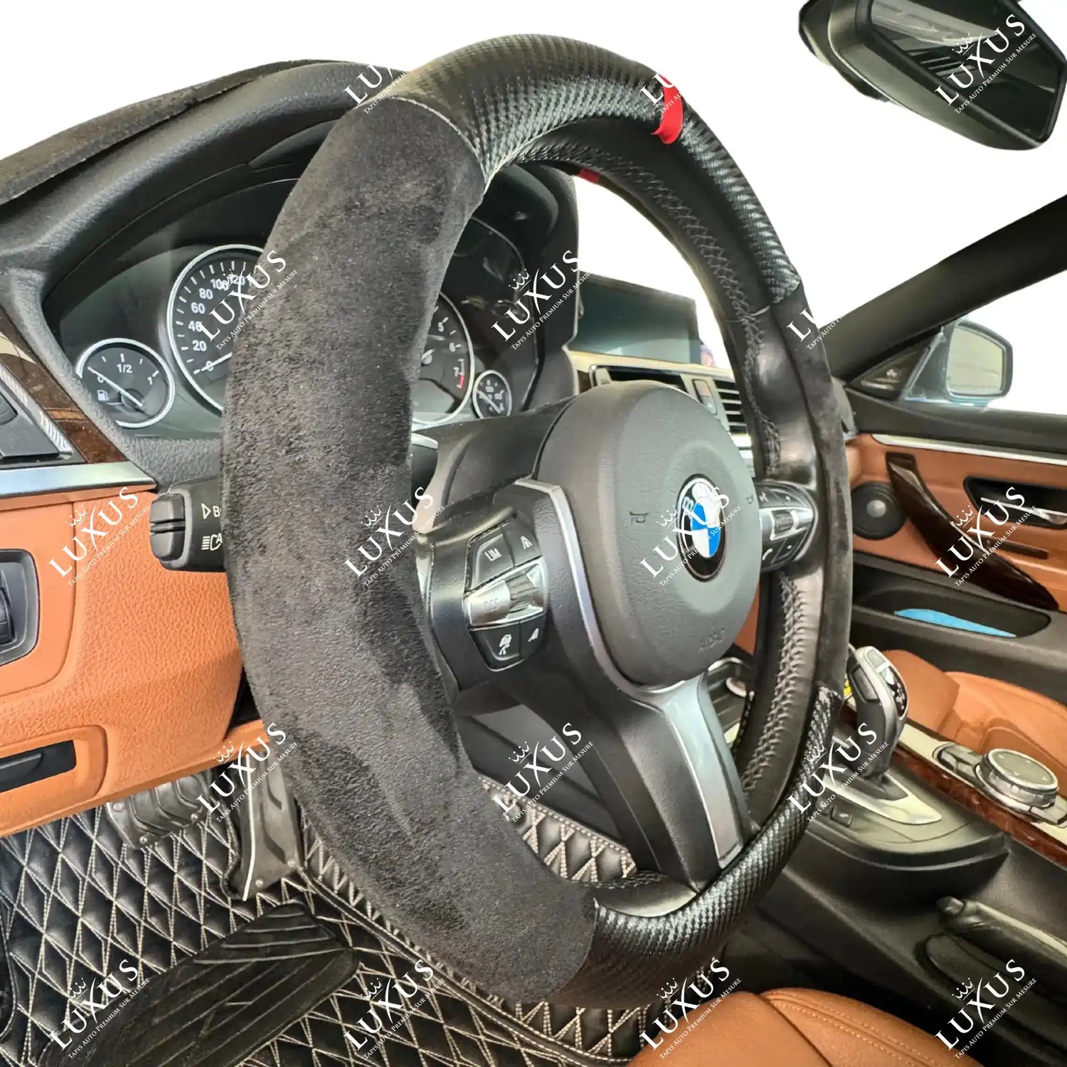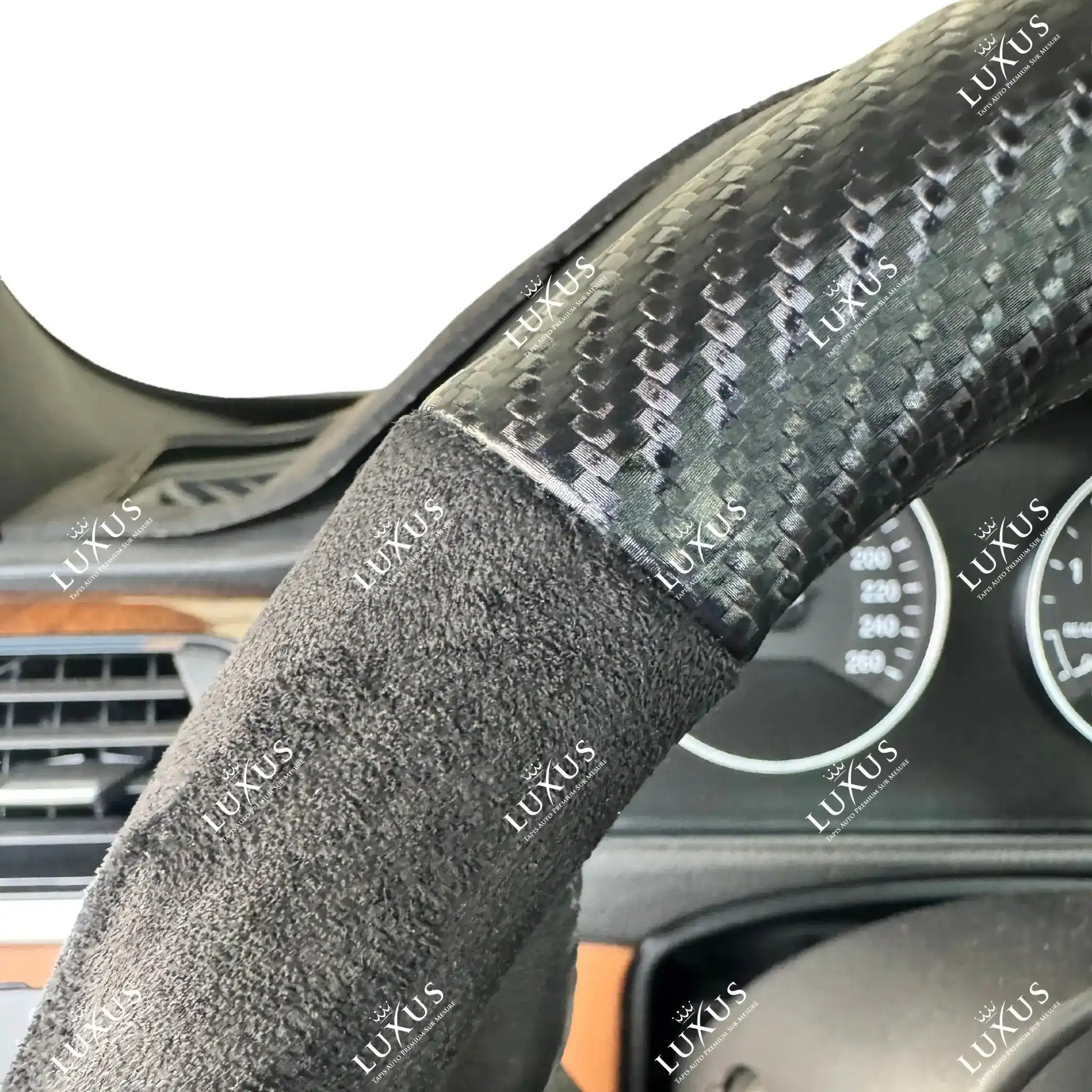 Conçue pour les passionnés de voitures qui apprécient à la fois le style et le confort, cette housse est fabriquée à partir de suédine et fibre de carbone synthétique de haute qualité, offrant une touche luxueuse et une prise en main douce qui améliorent votre expérience de conduite.