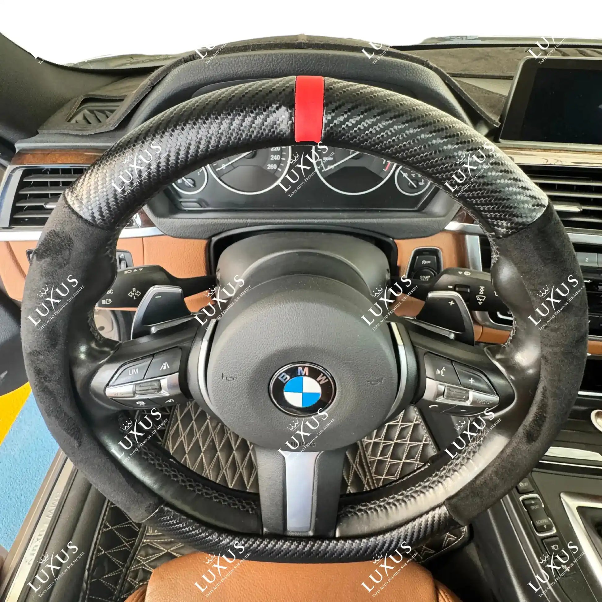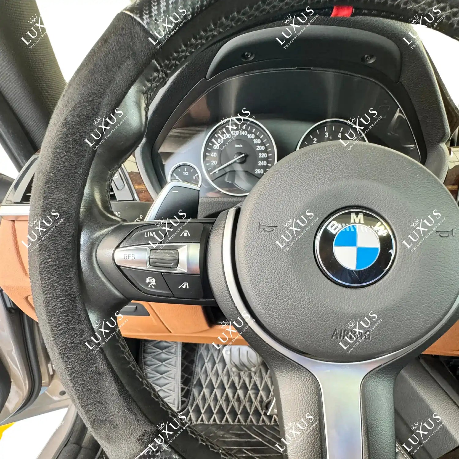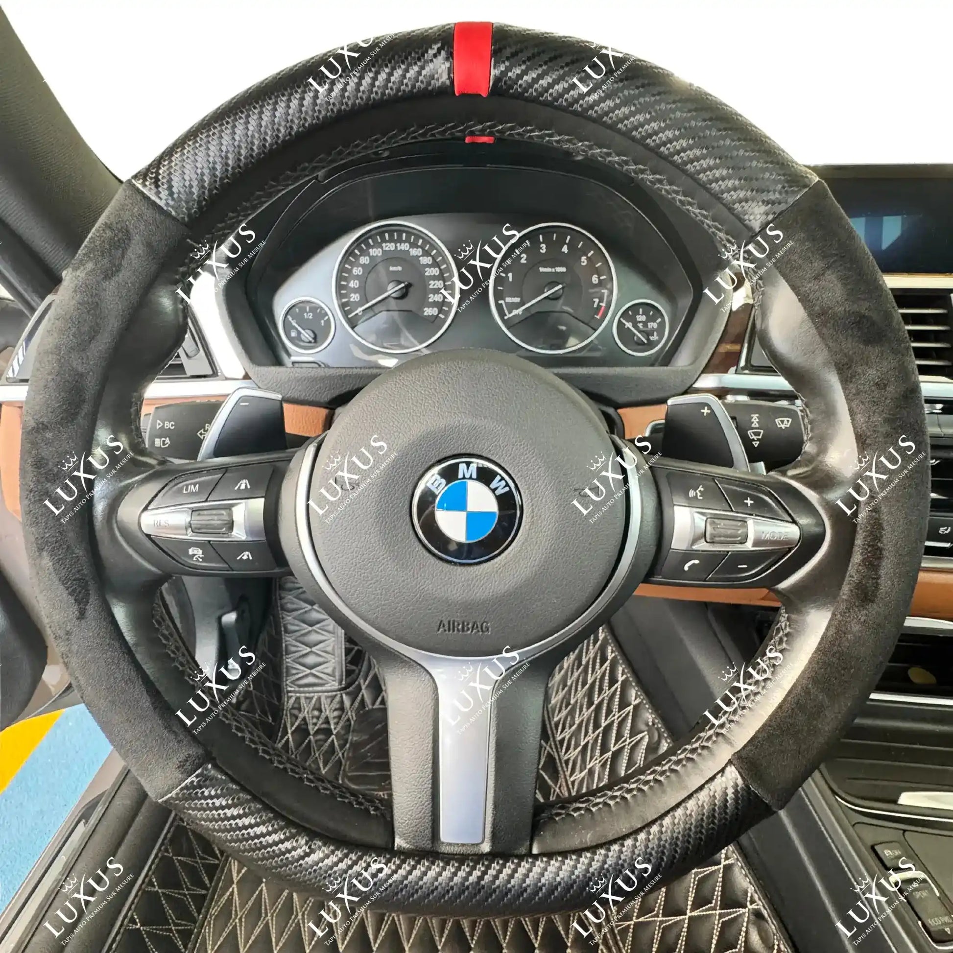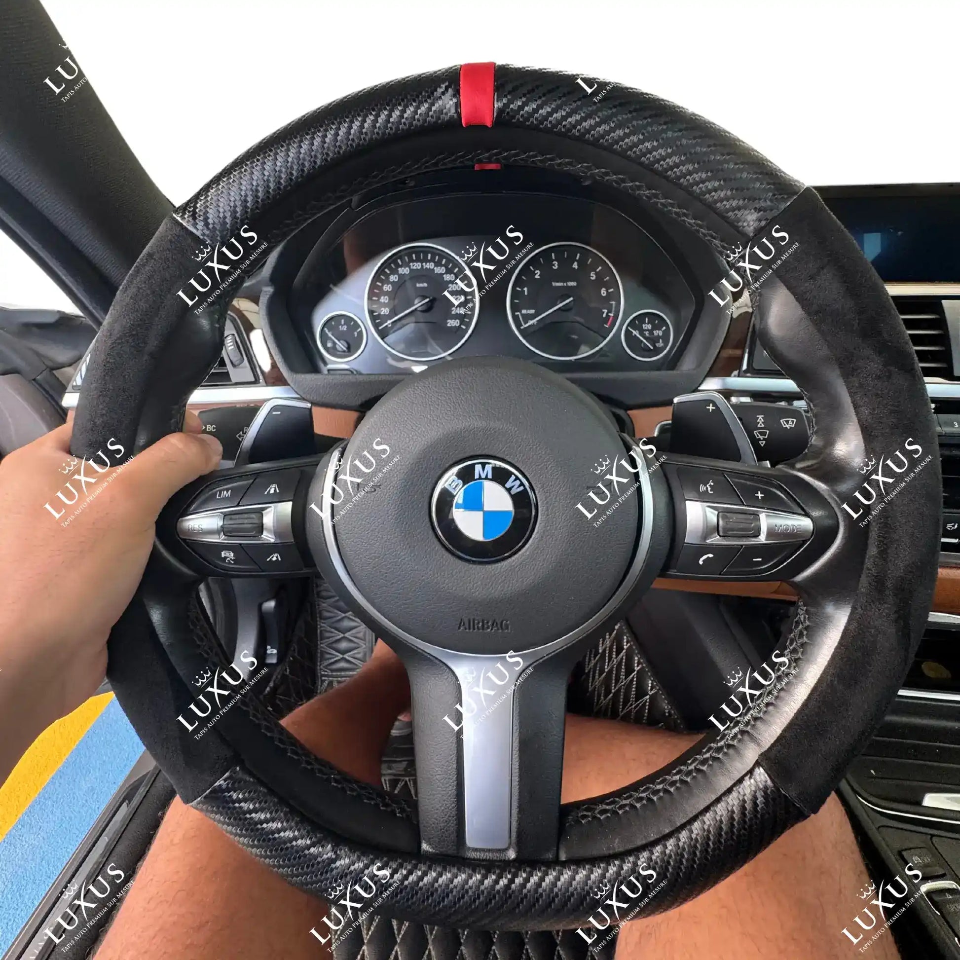 Conçue pour les passionnés de voitures qui apprécient à la fois le style et le confort, cette housse est fabriquée à partir de suédine et fibre de carbone synthétique de haute qualité, offrant une touche luxueuse et une prise en main douce qui améliorent votre expérience de conduite.