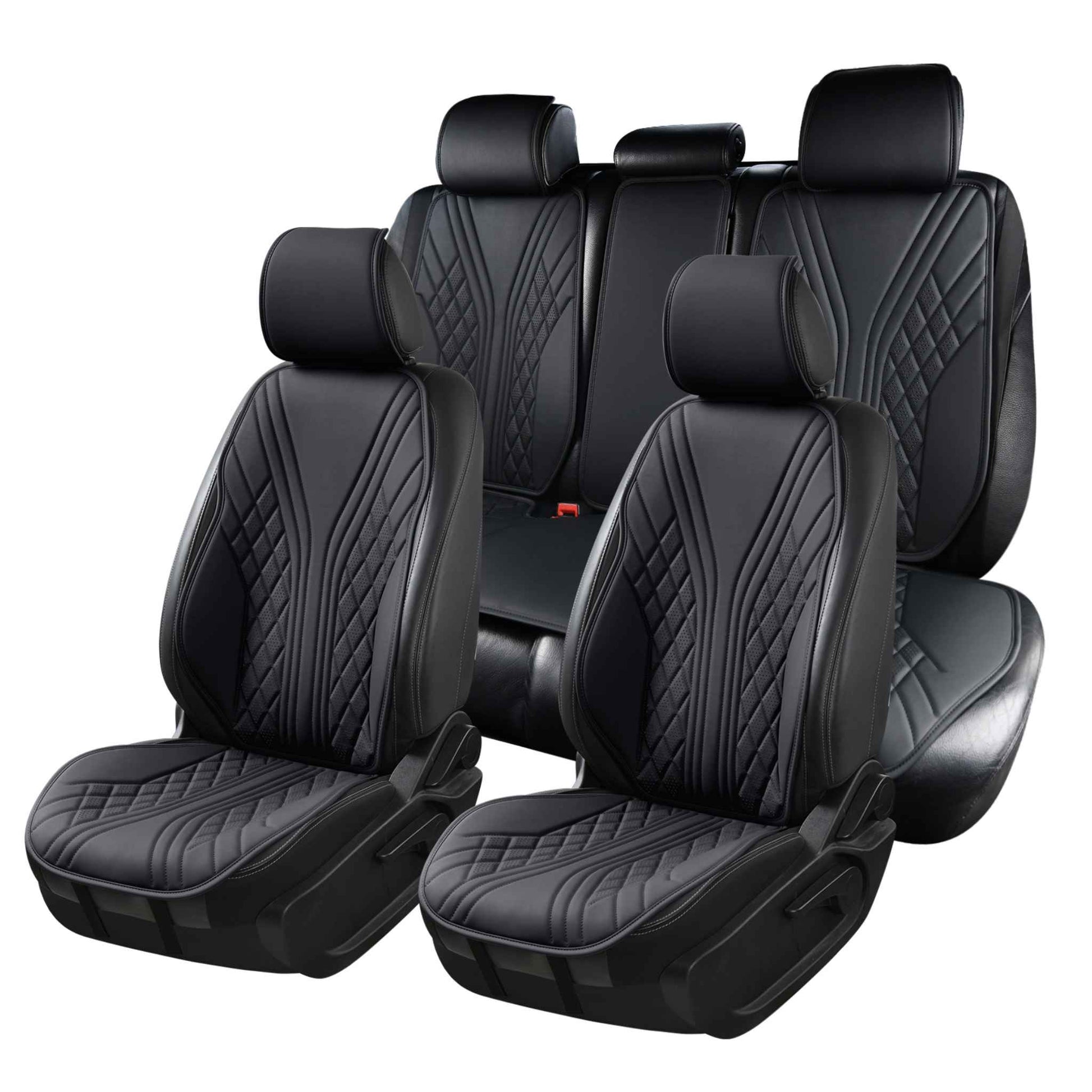 Luxus SeatSkin™ Housses de Siège sur Mesure en Similicuir – Motif Hybride Noir