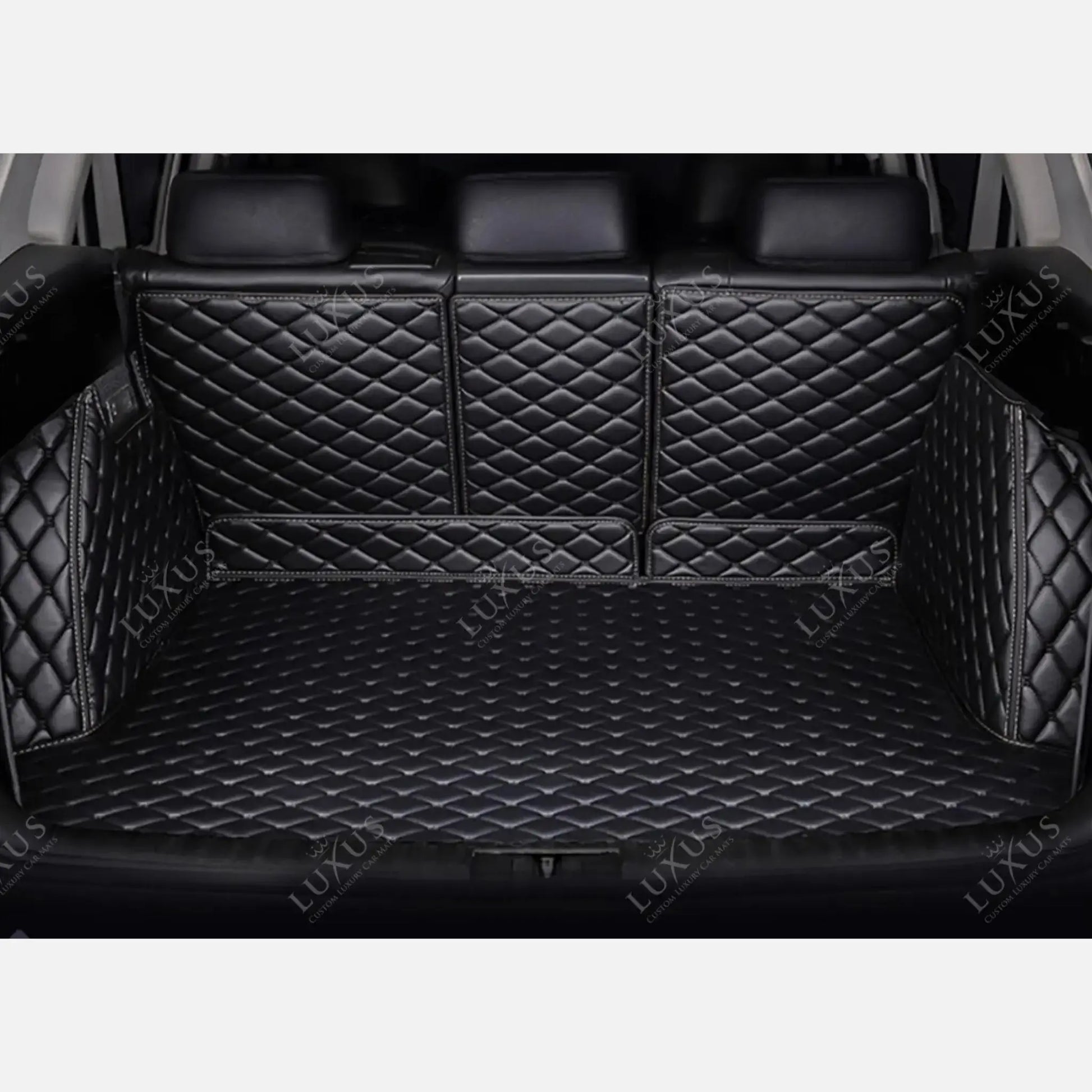 Tapis de coffre 3D intégral sur mesure premium Luxus – motif losange noir avec surpiqûres noires