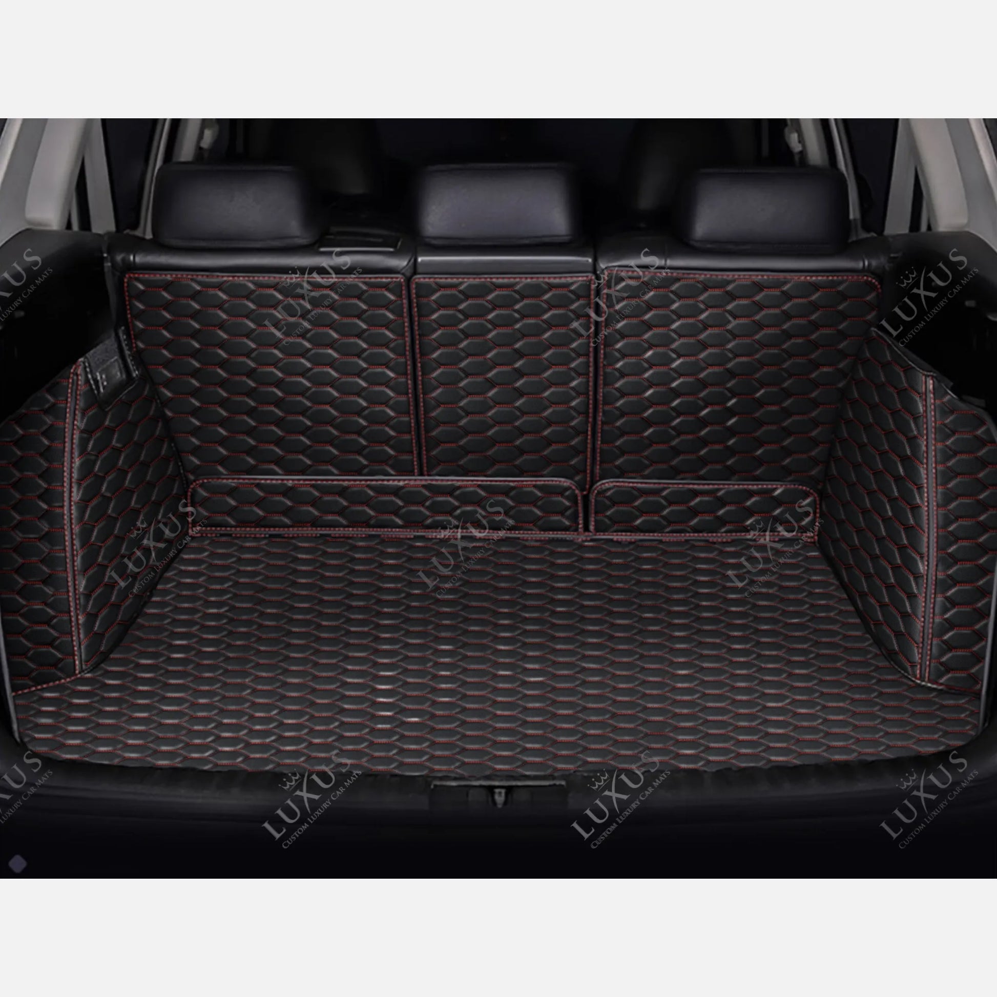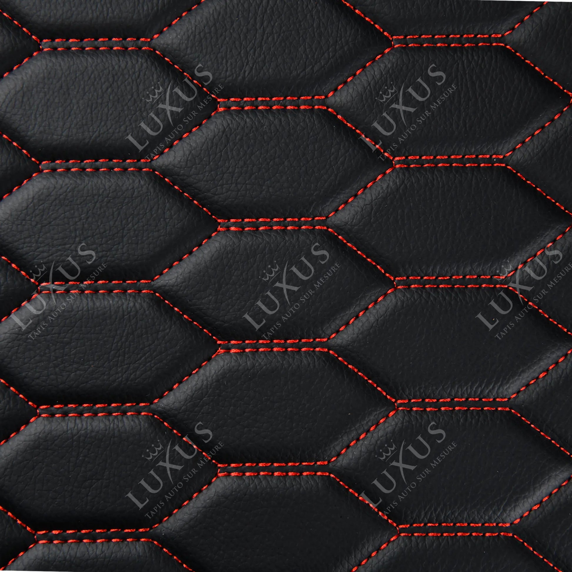 Tapis de Coffre 3D Intégral sur Mesure Premium Luxus – Motif Nid d’Abeille Noir avec Surpiqûres Rouges