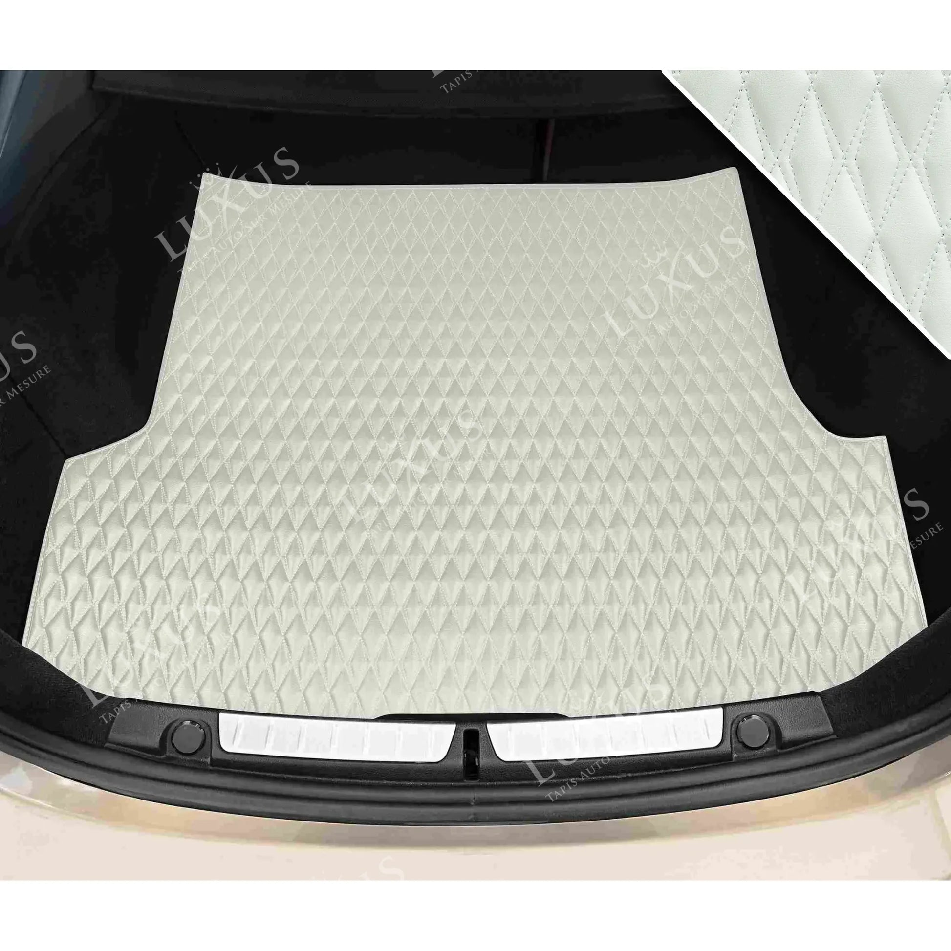 Tapis de Coffre sur Mesure Premium Luxus – Motif Double Losange Blanc Neige