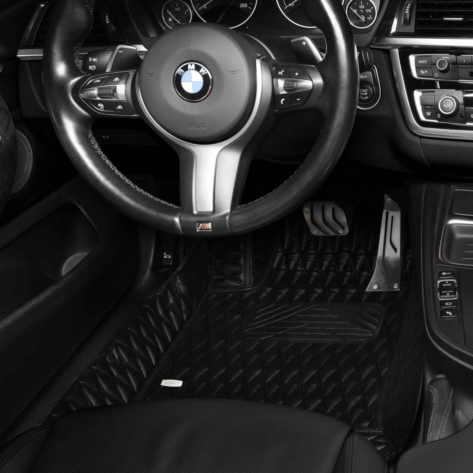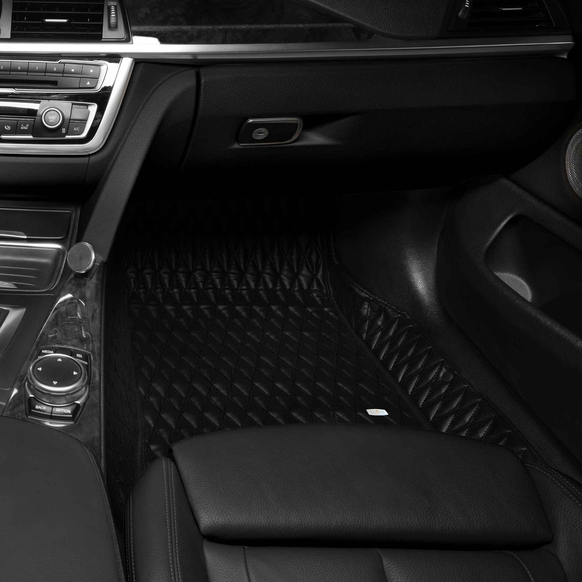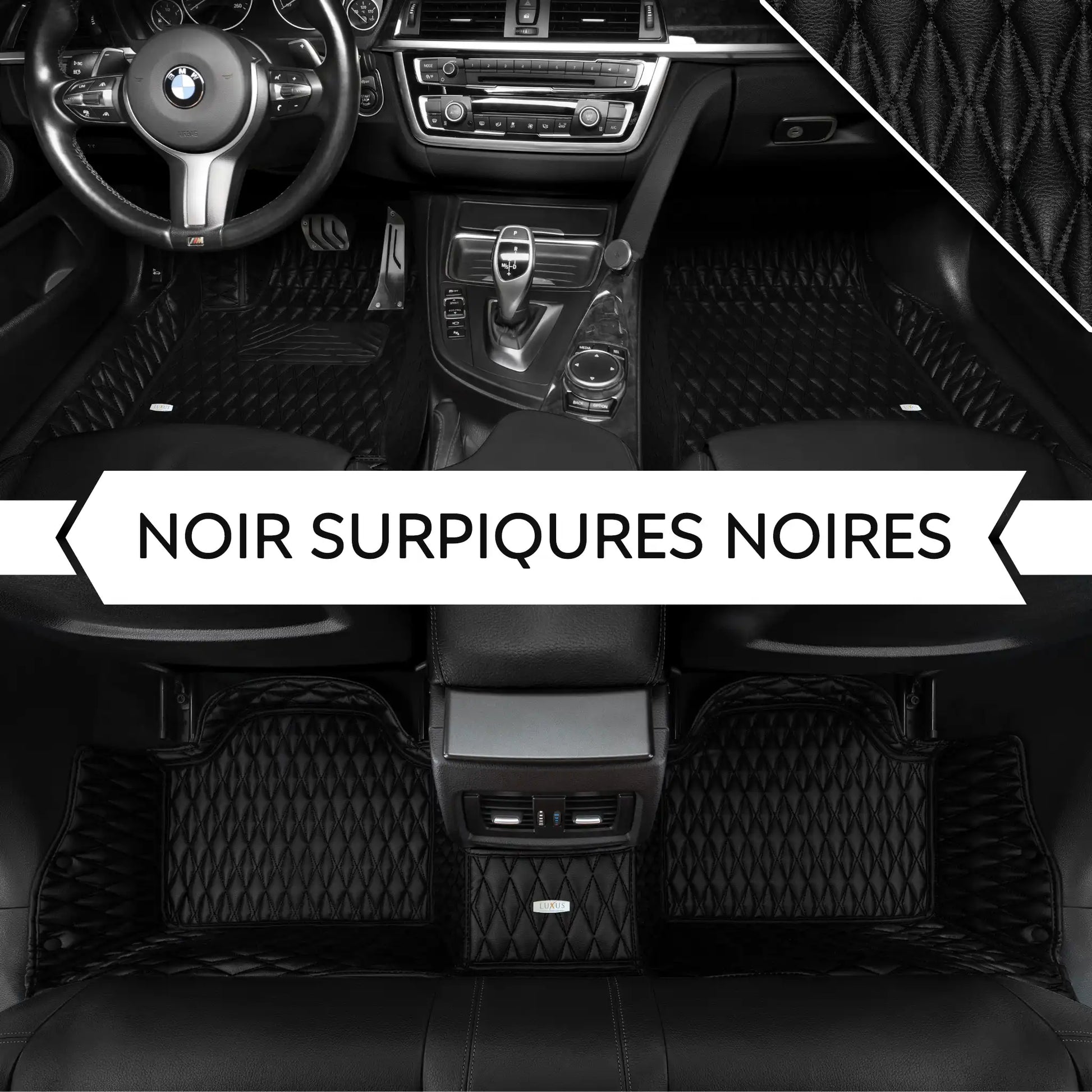 Tapis de Sol 3D sur Mesure Premium Luxus – Motif Double Losange Noir avec Surpiqûres Noires
