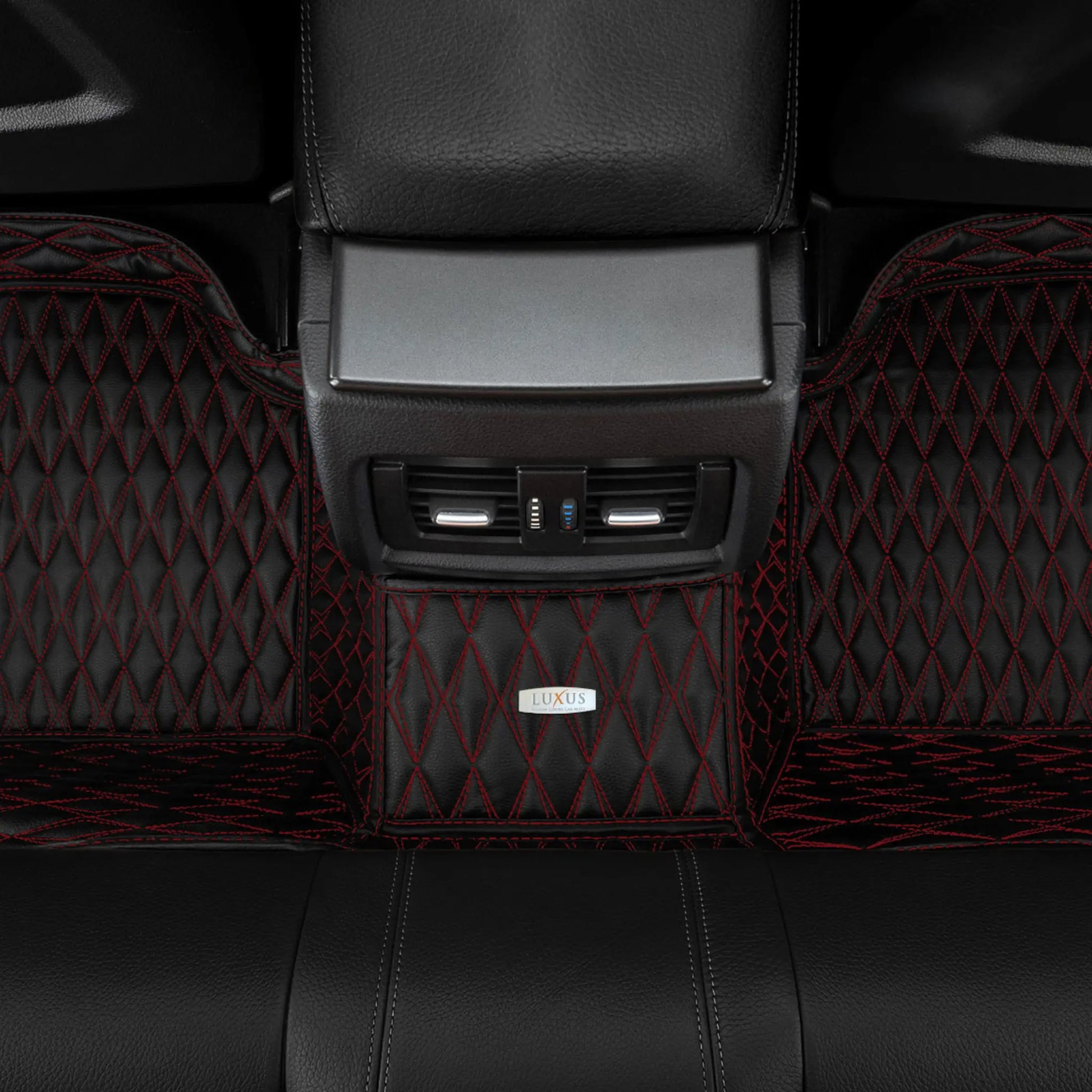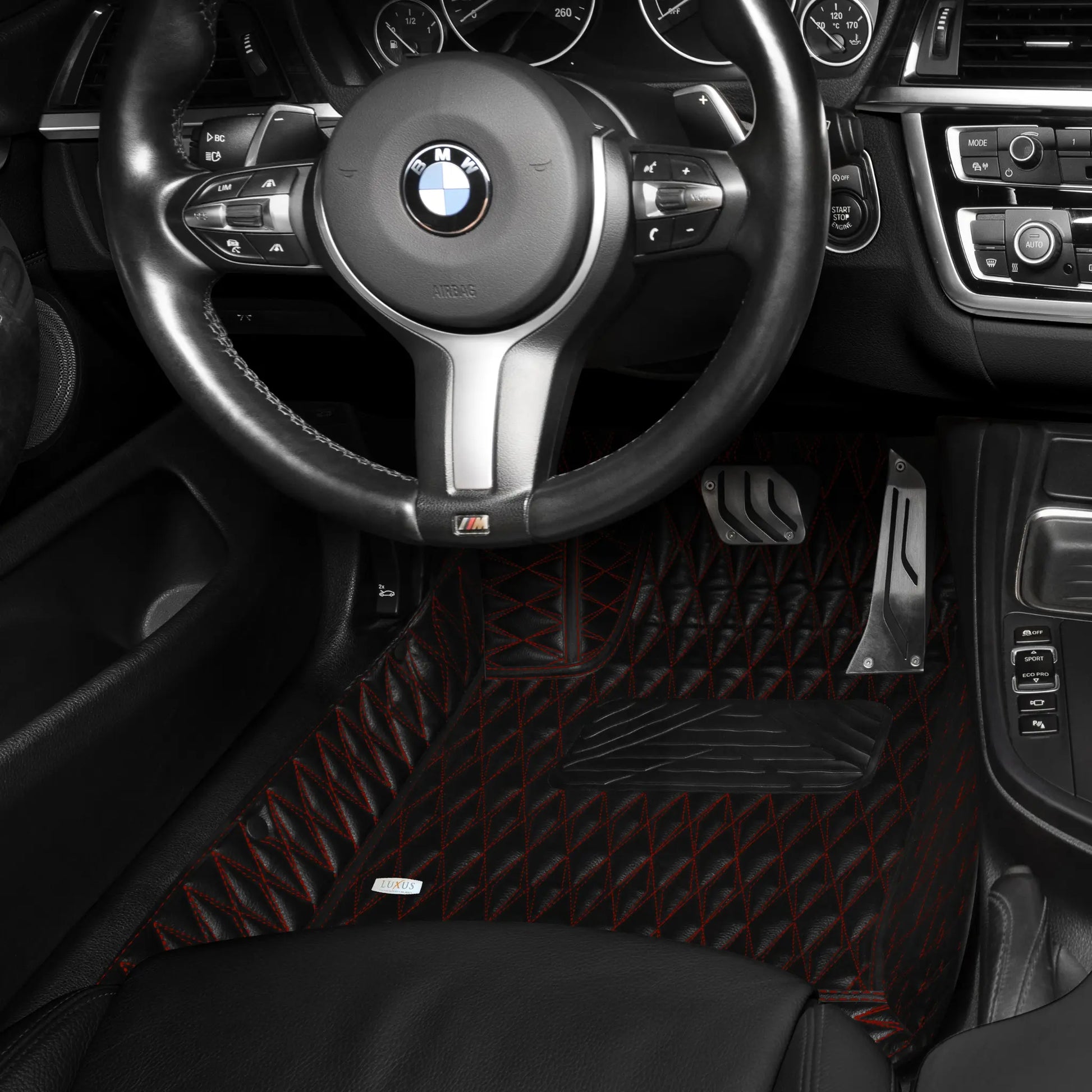 Tapis de Sol 3D sur Mesure Premium Luxus – Motif Double Losange Noir avec Surpiqûres Rouges