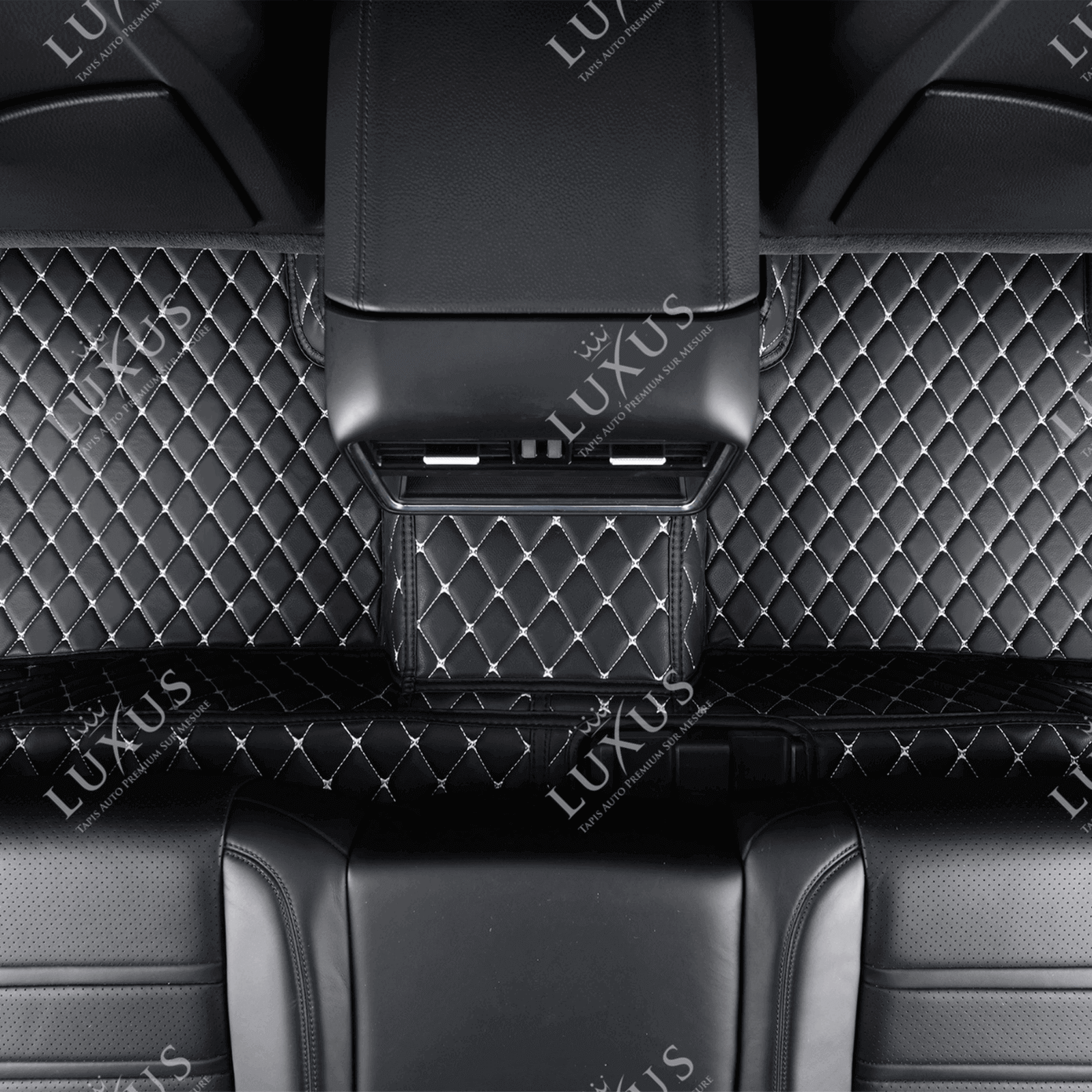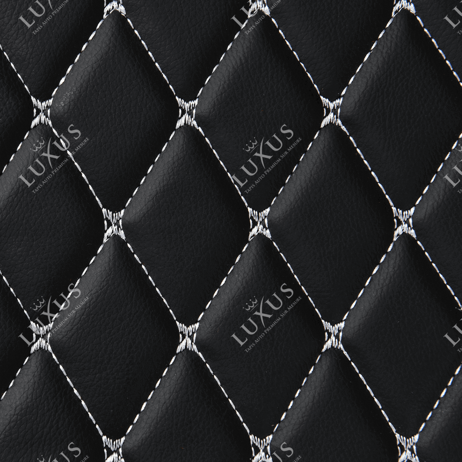 Tapis de Sol 3D sur Mesure Premium Luxus – Motif Losange Noir avec Surpiqûres Blanches