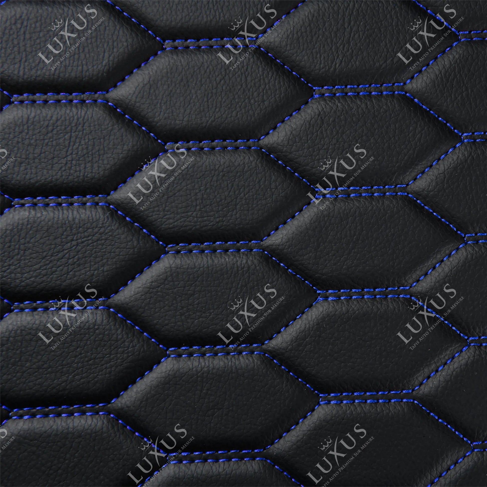 Tapis de Sol 3D sur Mesure Premium Luxus – Motif Nid d’Abeille Noir avec Surpiqûres Bleues